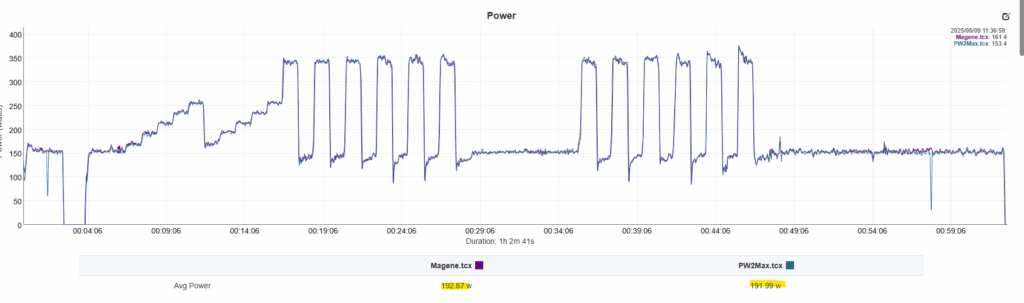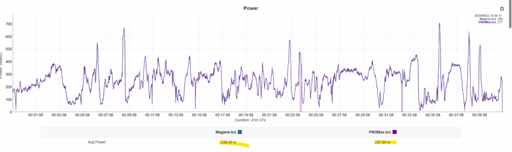 ומה לגבי התוצאות בפועל? כאן הופתעתי ממש לטובה. בכל המדידות שביצעתי בין ה-Power2Max לבין ה-P715S של Magene, ההפרשים היו בטווח של 0–2 וואט בלבד בממוצע, עם תאימות מוחלטת במדידות הקאדנס. מבחינתי זה מרשים ביותר, במיוחד כשמדובר בכניסה ראשונה של החברה לתחום הפדלים.
