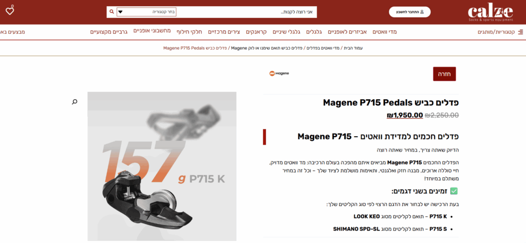לרוכבים בישראל שמעוניינים ב-Magene P715, היבואן הרשמי הוא Calze. המחיר, נכון להיום כפי שמפורסם באתר, עומד על ₪1,950.