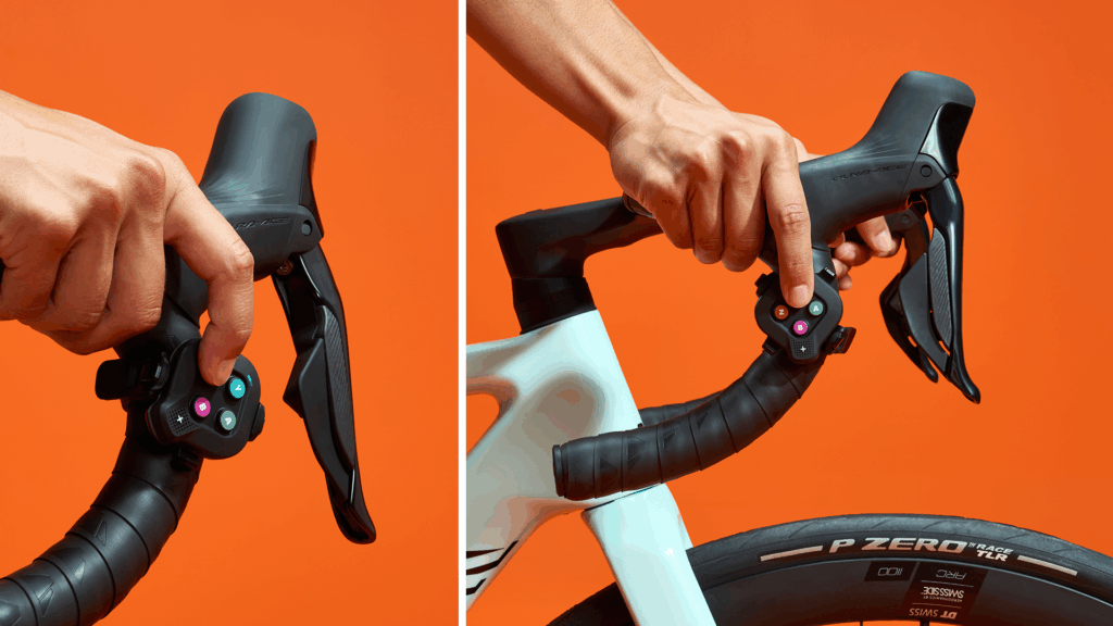 • מה זה? ערכה שכוללת את ה-Zwift COG וזוג שלטים קטנים (ימין ושמאל) המתחברים לכידון ומאפשרים שליטה אלחוטית באפליקציית Zwift: היגוי, ניווט בתפריטים, קיצורי דרך והילוכים וירטואליים – וכל זה במחיר נגיש.